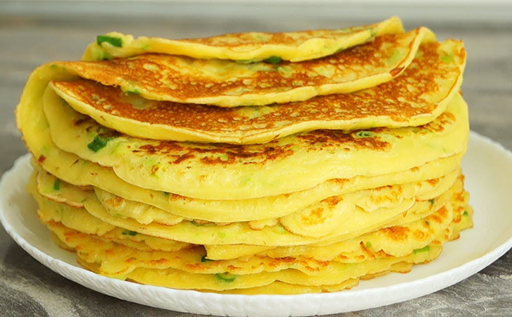 Минимум теста, подходят для мясной начинки. Тончайшие блинчики из кабачков