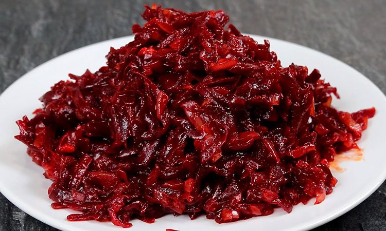 Необычный салат из свеклы: вкусный без заправки. Тонкость в пассерованном луке