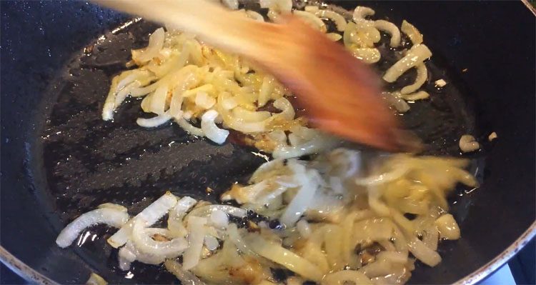4. Разогрейте сковороду с 2–3 ст. л. растительного масла. Сначала обжарьте лук до прозрачности, затем добавьте морковь. Обжаривайте всё вместе до золотистого цвета и лёгкого карамельного аромата. Это займет около 7–10 минут.