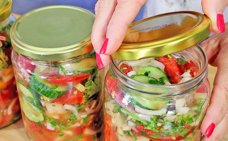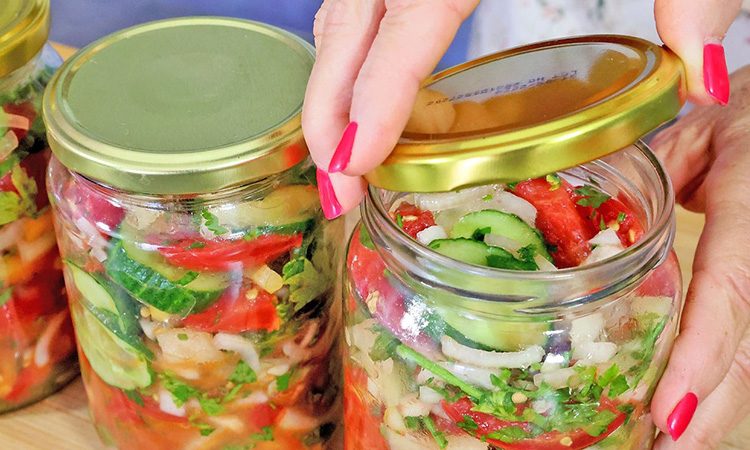 Зимой достаточно открыть банку и можно сразу подавать на стол. Балканский летний салат на зиму
