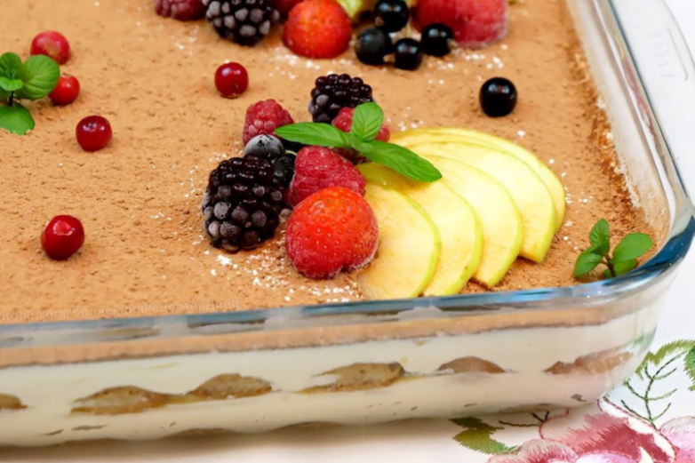 Домашний тирамису без яиц за 40 минут. Обмакиваем печенье и выкладываем слоями