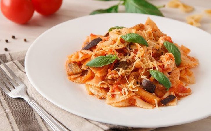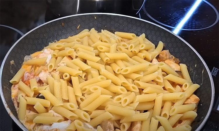 Паста с курицей и баклажанами в сметанном соусе наверняка станет одним из ваших любимых вариантов быстрого ужина. Тонкость вкуса здесь в том, что макароны доходят до готовности прямо в овощах и соусе, впитывая вкус лука, чеснока, помидоров и специй. Благодаря этому блюдо получается ароматным, сочным и особенно гармоничным по вкусу.