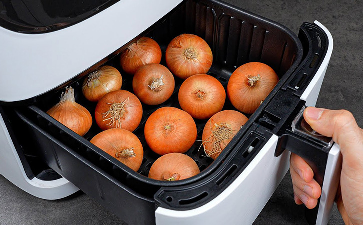 В аэрофритюрнице лук раскрывается совершенно по-новому: из простого овоща он превращается в сочные дольки с нежной серединкой и аппетитной хрустящей оболочкой. Сначала лук томится при невысокой температуре, становится мягким и сладковатым, затем обволакивается панировкой с сыром и зеленью и подрумянивается до золотистой корочки. В итоге получается закуска с насыщенным вкусом, которая подается и как самостоятельное блюдо, и как гарнир к мясу.