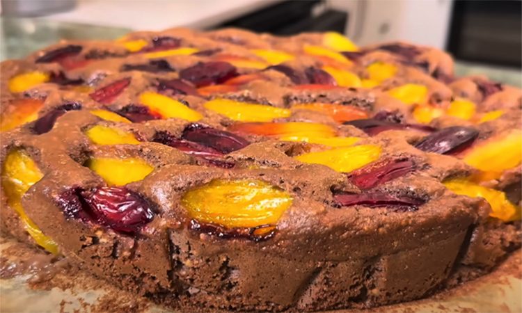 Сливовый пирог готовится на основе простого теста с добавлением какао и орехов, что придает выпечке насыщенный вкус и аромат. Сами сливы добавляются уже сверху, при запекании они словно превращаются в крем, формируя нежный слой из фруктового джема. При желании здесь можно взять любые фрукты, чтобы по одному и тому же рецепту каждый раз получать чуть другой десерт.