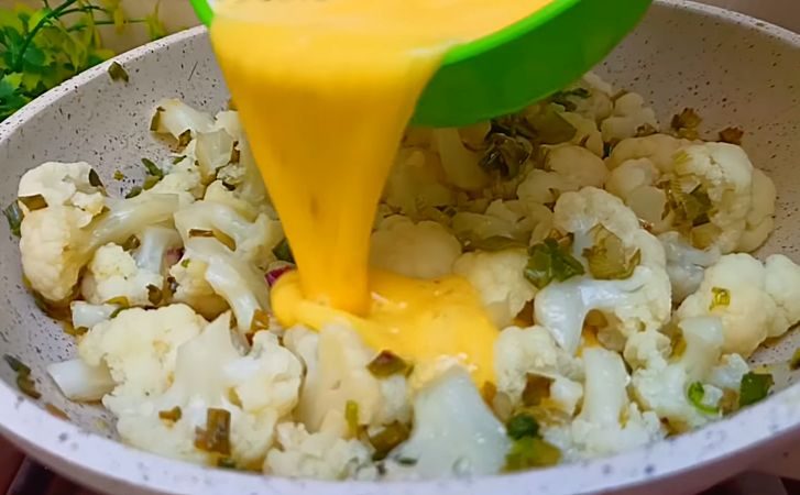 Сначала обвариваем, потом жарим с яйцом. Вкусный гарнир из цветной капусты