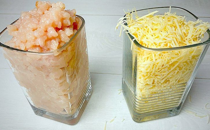 Соединяем стакан фарша и стакан тертого сыра. Сырный рулет из простых ингредиентов