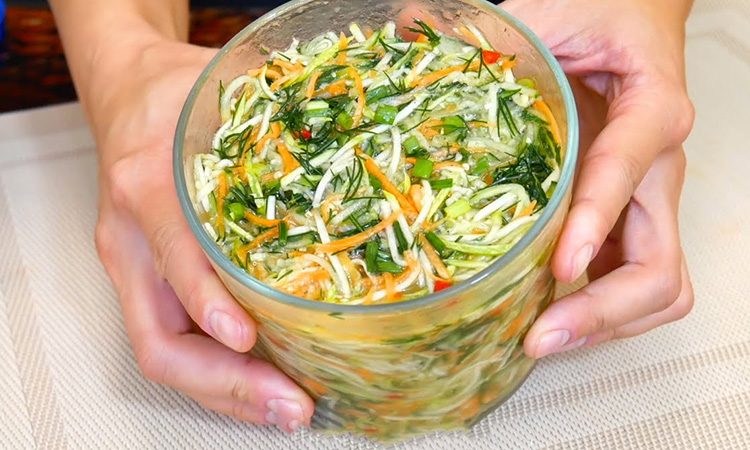 Иногда именно самые доступные продукты дают лучший результат. Стоит лишь смешать кабачки, огурцы и морковь — и получится салат, вкус которого будет радовать каждый день.