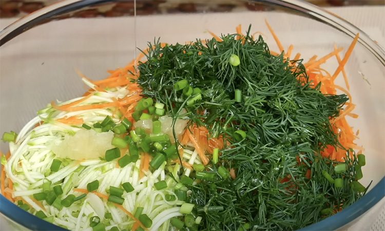 В основе кабачок, морковь и огурец. Открыли для себя этот ходовой салат