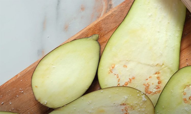 Баклажаны нарежьте тонкими полосками, присыпьте солью и оставьте на 10–15 минут, чтобы вышла горечь. Картофель нарежьте кусочками и отварите 5 минут в подсоленной воде. Баклажаны обсушите, затем запеките 12–15 минут при 200°С, смазав маслом. На сковороде обжарьте лук до прозрачности, добавьте измельчённый чеснок и готовьте ещё минуту. Введите фарш и жарьте около 5 минут.