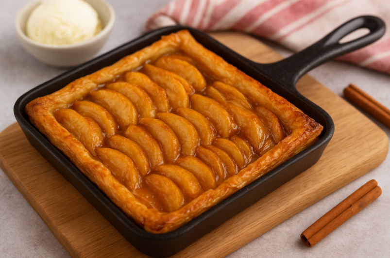 Этот пирог создан для тех, кто ценит домашний уют и быстрые рецепты. Всего несколько доступных ингредиентов — и уже через 15 минут на столе ароматная выпечка с карамелизированными яблоками и нежным тестом, напоминающая французский тарт-татен.