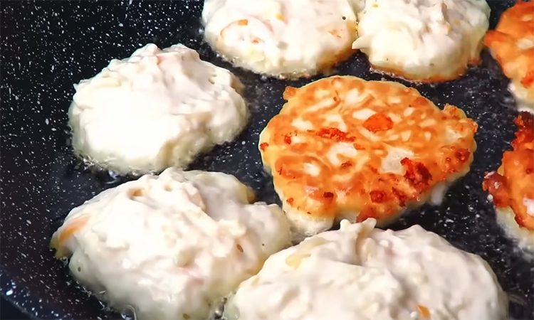 После этого тесто не мешайте повторно, просто выровняйте поверхность. Разогрейте сковороду, налейте немного масла — столько, чтобы покрывало дно. Берите тесто ложкой с края, выкладывайте небольшими порциями. Обжаривайте по 2–3 минуты с каждой стороны на среднем огне до золотистой корочки.