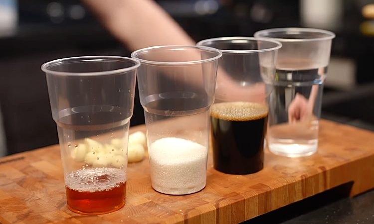1. В глубокий сотейник влейте соевый соус и воду. Добавьте винный уксус — он придаст характерную кислинку. Всыпьте сахар, положите лавровый лист, сушеный имбирь и черный перец горошком. Поставьте сотейник на средний огонь, доведите до кипения. Убавьте огонь до минимального и дайте смеси прокипеть 10 минут, чтобы специи раскрыли аромат. Снимите с огня и остудите маринад до комнатной температуры. Только после остывания добавьте измельченный чеснок (так он сохранит яркий вкус и аромат).