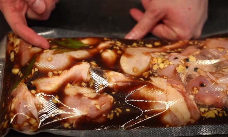2. Куриную голень промойте и обсушите бумажными полотенцами. Переложите в глубокую кастрюлю или в прочный пищевой пакет. Залейте подготовленным маринадом так, чтобы мясо было полностью покрыто жидкостью. Накройте крышкой или завяжите пакет и уберите в холодильник минимум на 12 часов (лучше на ночь). Чем дольше курица маринуется, тем насыщеннее становится ее вкус.