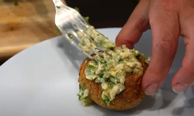 Горячую картошку смажьте этим маслом. Оно растает и пропитает надрезы, придавая насыщенный чесночный вкус. Блюдо можно подавать как гарнир или основное — оно сытное и универсальное.