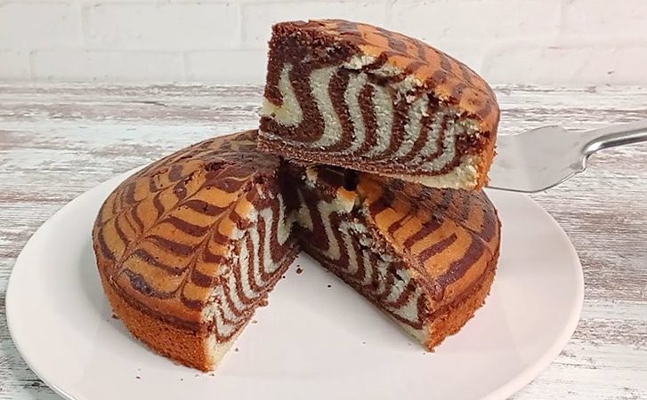 Готовая «Зебра» получается ровной, влажной и ароматной. Она долго не черствеет и отлично подходит к чаю или кофе.