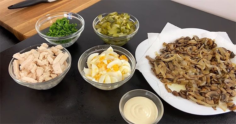 Невероятное сочетание курицы и грибов. Салат Осенний вальс