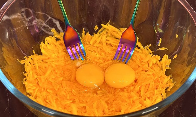 Добавьте натёртую тыкву и распределите её равномерно по тесту, чтобы каждая лепешка получилась с сочной мякотью. Разогрейте сковороду на среднем огне и налейте немного растительного масла. Выложите порцию теста ложкой, придавая форму лепёшки.