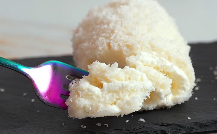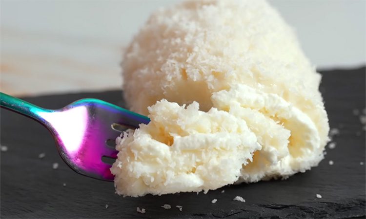 Десерт получается мягким, сливочным и ароматным. Его вкус напоминает кокосовые конфеты, а текстура — густой молочный крем.