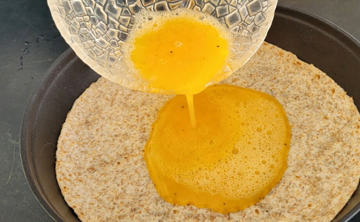 Просто вылейте 2 яйца на лаваш. Результат за 5 минут и он вкуснее любой пиццы
