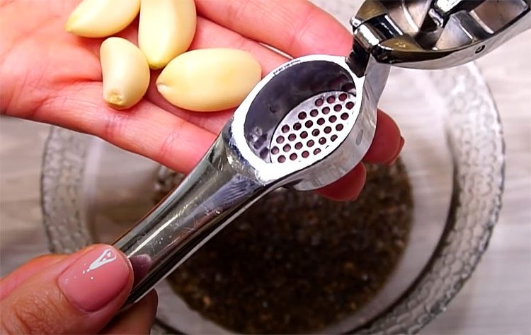 2. В миске соедините оливковое масло, соль, перец и базилик. Чеснок пропустите через пресс и добавьте к маслу со специями. Хорошо перемешайте вилкой или венчиком до однородной массы.