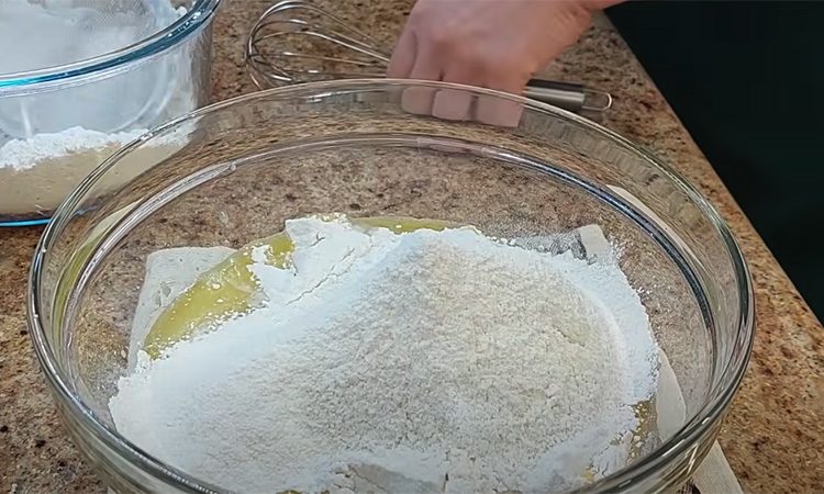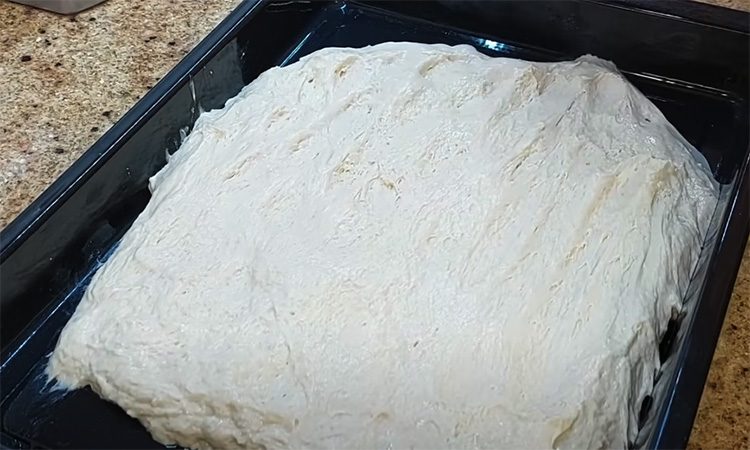 Снова накройте, оставьте на двадцать минут и повторите действие еще дважды. После последнего складывания уберите миску в холодильник на ночь. Утром достаньте тесто, дайте ему согреться до комнатной температуры. Противень смажьте растительным маслом, выложите тесто и растяните его руками, смоченными водой, до толщины около двух сантиметров. Накройте полотенцем и оставьте на час, чтобы тесто снова поднялось. В это время мелко нарежьте розмарин.