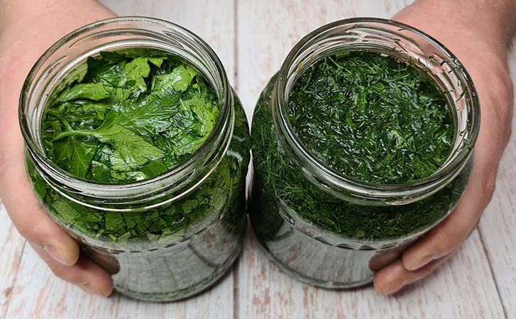 Зелень в холодильнике вянет быстрее, чем успеваешь ее использовать. Зимой же покупать ее и вовсе сплошное разорение — проще и дешевле заготовить зелень впрок, в банках.
