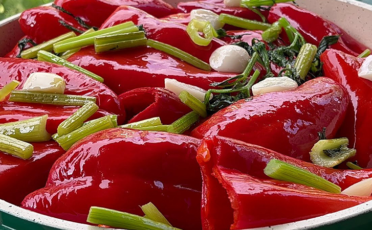 Ферментированный перец обладает плотной текстурой и насыщенным вкусом, который раскрывается постепенно. Пряности и листья вишни придают аромату глубину, а кислая нотка рассола балансирует сладость перца. Ведро такого перца зимой становится ценным запасом для салатов и закусок.