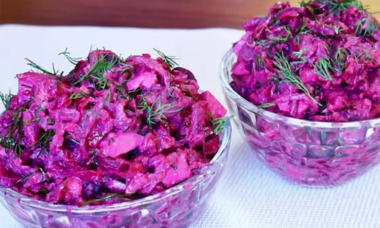 Салат Барби ценят за сочность, насыщенный вкус и ту особенную свежесть, которую дает сочетание свеклы, огурцов и зелени. Он подходит для подачи на повседневный стол, но идеально впишется и на праздничный — салат яркий, привлекающий внимание. Свекла дает ему насыщенность, огурцы добавляют хруст, а жареный лук завершает композицию мягкой сладкой ноткой. Блюдо уверенно держит форму, хорошо пропитывается и становится еще выразительнее после недолгого охлаждения.