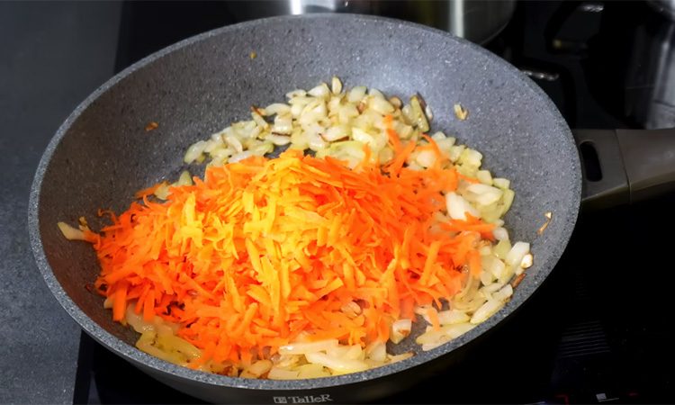 Разогрейте сковороду с растительным маслом. Обжарьте лук до полупрозрачности, затем добавьте морковь и обжарьте еще пару минут до мягкости. Добавьте свеклу, перемешайте, добавьте томатную пасту и натертые огурцы. Перемешайте все и протушите под крышкой на среднем огне около 7 минут.