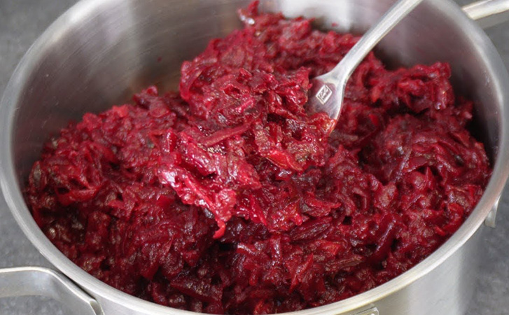 Именно такую свекольную икру очень любили советские хозяйки. Она получается одновременно мягкой, сочной и ароматной, а сочетание обжаренного лука и моркови с томатной пастой создает особенно насыщенный вкус. Кроме того, икра универсальна, подавать ее можно и салатом, и гарниром, или просто намазать на хлеб и получить быструю закуску.