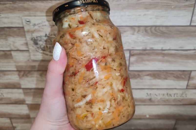 Уже на следующий день вы получите хрустящую, ароматную и необычайно сочную капустную закуску, которая подойдёт к мясу, рыбе, картофелю или станет самостоятельной легкой закуской.