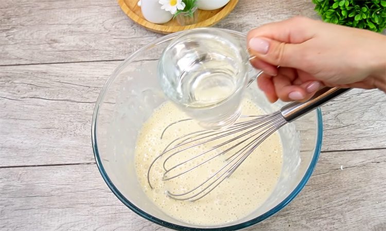В глубокой миске взбейте яйца с солью, добавьте кукурузный крахмал и размешайте до однородности, затем постепенно влейте молоко и продолжайте работать венчиком, пока масса не станет гладкой. Вмешайте растительное масло и доведите тесто до жидкой консистенции, после чего разогрейте сковороду и смажьте ее маслом только для первого блина. Перемешайте тесто перед каждым выливанием, налейте небольшую порцию и равномерно распределите по поверхности, обжарьте блинчики примерно по минуте с каждой стороны, складывая их в стопку.