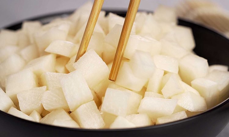 Корейская кухня давно доказала, что ферментация меняет овощи сильнее, чем любая термическая обработка. Редька, выдержанная в соли, специях и чесноке, превращается в сочную и ароматную закуску с хрустом и легкой остротой. Её можно подавать к любому горячему блюду, хранить неделями и с каждым днём она становится только вкуснее.