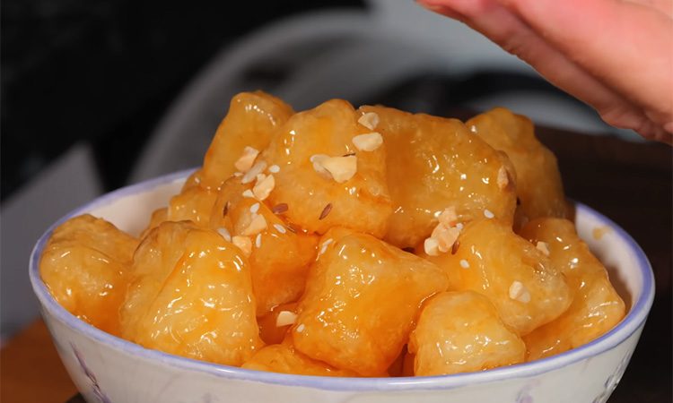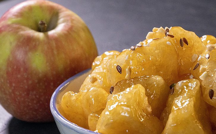 Забудьте о привычных десертах, потому что эти жареные яблоки покорят вас с первого укуса своим необычным вкусом и текстурой. Его секрет кроется в двойной обжарке, которая создает идеальную хрустящую корочку при мягкой сердцевине. Затем фрукты покрываются уникальной кисло-сладкой глазурью на основе яблочного сока и карамели и в результате получается десерт, который разбирают быстрее любых конфет.
