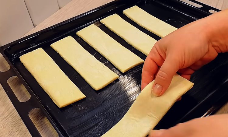 Оставьте смесь мариноваться около получаса при комнатной температуре, а если время позволяет, уберите в холодильник на два часа или на ночь, чтобы вкус получился ярче. Подготовьте ананасы, промокните их, нарежьте маленькими кубиками и вмешайте в уже промаринованное филе, добиваясь равномерного распределения фруктовой кислинки. Разверните слоеное дрожжевое тесто, слегка подкатайте его, оставляя толщину около пяти миллиметров, чтобы оно держало начинку и поднялось в духовке. Нарежьте тесто на длинные полосы одинаковой ширины, смажьте противень кусочком сливочного масла и разложите полосы на расстоянии друг от друга.