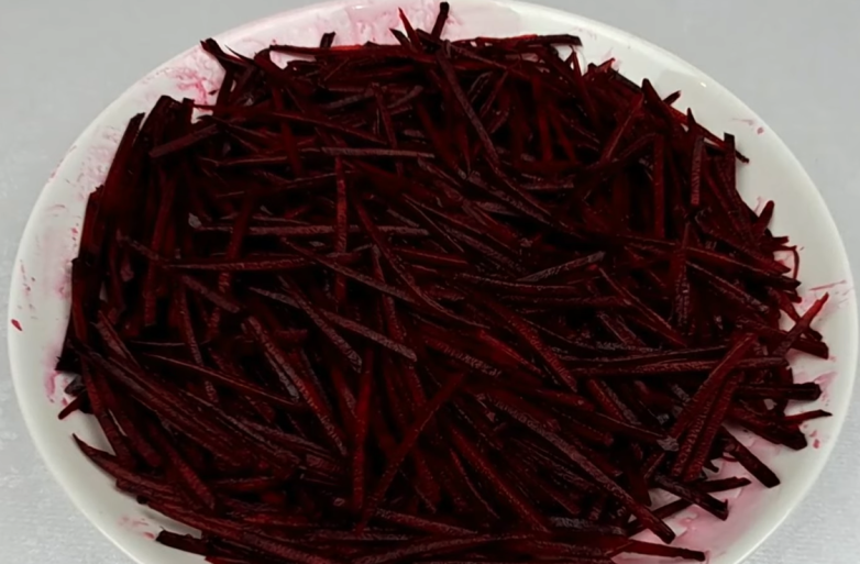 Свекла столовая, 500–700 г (по вкусу), натереть соломкой или на корейской терке