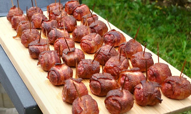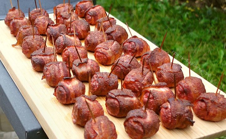 Разделите фарш на 28–30 порций по 40–42 г и скатайте шарики влажными или смазанными маслом руками. Выложите митболы на решетку в зону непрямого жара, оставляя промежутки между шариками, накройте крышкой и готовьте 20 минут при стабильной температуре, пока дым от чурки мягко не пройдет.