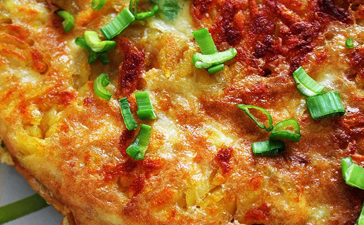Теста нет, вместо него в основе картофель. Быстрый пирог на сковороде на каждый день