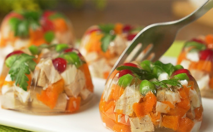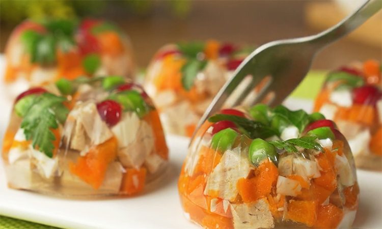 Закуска получится аккуратной, с прозрачным слоем и ровной структурой, подойдет для подачи на любой праздничный стол.
