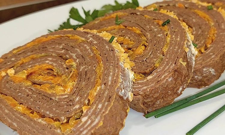 Праздничный стол редко обходится без закусок, и печеночный рулет заслуженно занимает среди них особое место. Его любят за мягкую текстуру, аппетитный аромат и сбалансированный вкус. Блины из куриной печени, тонкий слой овощей и домашний майонез создают идеальное блюдо, от которого не откажутся и те, кто вообще не ест печенку.