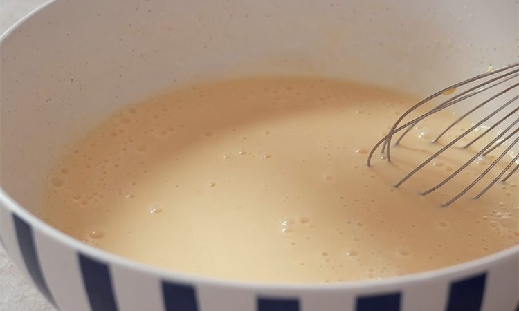 Разбейте яйца в миску, добавьте соль, сахар и растительное масло, всыпайте муку и перемешивайте до однородной консистенции, чтобы тесто стало полностью гладким. Влейте молоко и продолжайте размешивать до полного соединения, затем добавьте кипяток и снова перемешайте, чтобы получить более тонкую текстуру. Прогрейте сковороду, распределяйте тесто тонким слоем и обжаривайте блинчики до румяного цвета с обеих сторон, складывайте их стопкой и накрывайте крышкой, чтобы они стали мягче.