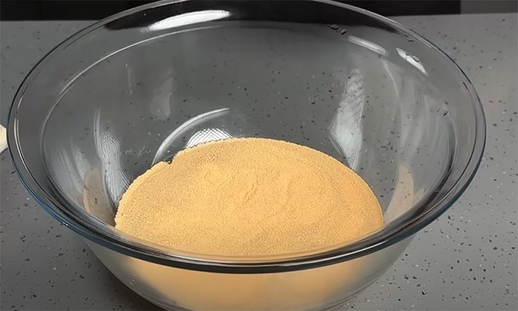 1. В теплой воде (примерно 36–38 °C, не горячей) растворите сахар и всыпьте сухие дрожжи. Хорошо перемешайте, чтобы не осталось комков. Оставьте смесь на 5–10 минут при комнатной температуре — на поверхности должна появиться легкая пена. Это означает, что дрожжи активировались и тесто будет хорошо подниматься.