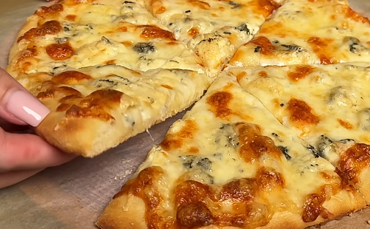 Сочная домашняя пицца с хрустящей корочкой и богатым сырным вкусом. Несмотря на то, что готовится в обычной духовке, она пахнет как будто только что из настоящей печи, с лёгкой ноткой дымка.