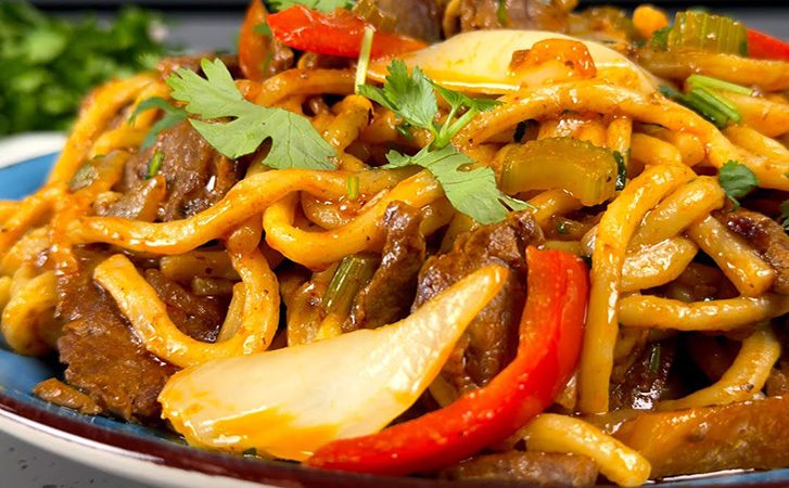 Жареный лагман все любят за универсальность, блюдо собирает целый букет вкусов в одной сковороде. Мясо остается мягким, лапша впитывает соус и сохраняет упругость, а овощи добавляют блюду сочности. Домашний формат позволяет готовить без казана и не тратить лишнее время на длительное тушение.