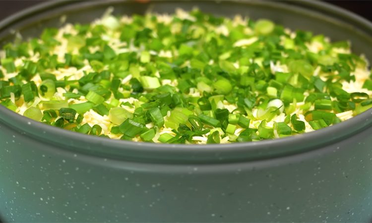 Этот слой также слегка смажьте майонезом, чтобы верхний белковый слой хорошо лег и получился цельным. Финальным слоем распределите натертые на крупной терке белки, создавая ровную белую поверхность, которая и дает эффект снега в названии салата. Белки в этом рецепте майонезом не промазывают, благодаря чему верх остается легким и визуально воздушным. Готовый салат в кольце накройте пленкой или крышкой и уберите в холодильник минимум на 2 часа. За это время селедка, лук, яблоко и верхние слои успеют обменяться вкусами, майонез стабилизирует слои, а структура салата станет более плотной и удобной для нарезки.