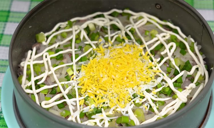 Салат «Селедка под снегом» хорошо подходит для праздничного стола, когда хочется знакомого вкуса, но с более интересной подачей. Здесь соленая рыба смягчается маринованным луком и легкой фруктовой кислинкой, а верхний слой дает аккуратную белую шапку, из-за которой салат выглядит особенно нарядно. Плавленые сырки добавляют сливочность и плотность вкуса, необычное сочетание делает салат запоминающимся, словно привычную селедку под шубой приготовили в более свежем и аккуратном варианте.