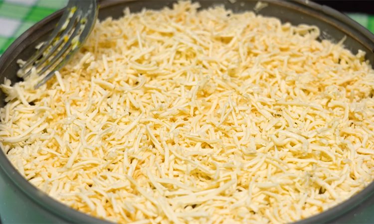 При желании натертое яблоко можно слегка сбрызнуть лимонным соком, но обычно это не обязательно, так как салат быстро собирается и уходит в холодильник. Плавленые сырки заранее подержите в морозильной камере 10–15 минут, затем натрите их на крупной терке в отдельную миску. Легко подмороженный сыр лучше держит форму и не слипается в комок. Для сборки подготовьте тарелку и разъемное кулинарное кольцо диаметром около 18 см. Установите кольцо по центру тарелки. На дно выложите всю нарезанную селедку и аккуратно распределите по всей площади, слегка утрамбовывая, чтобы слой был равномерным и без пустот.