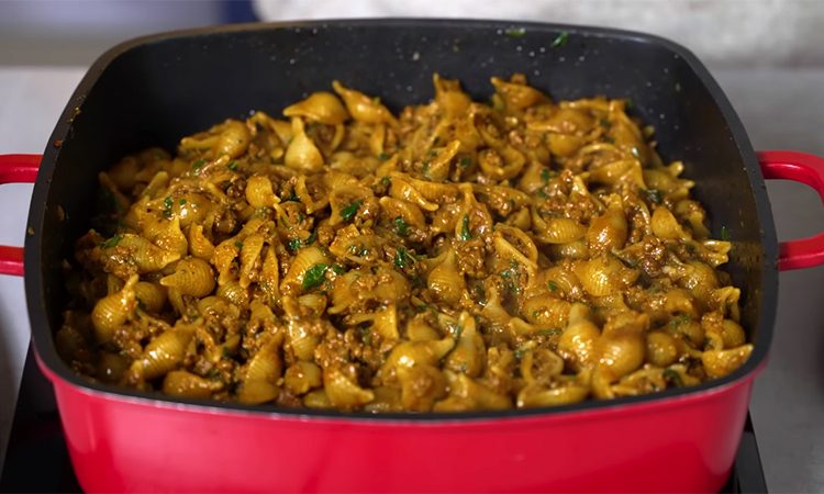 Такой способ приготовления позволяет каждой макаронине наполниться мясным фаршем, создавая идеальный баланс текстур и насыщенный вкус.