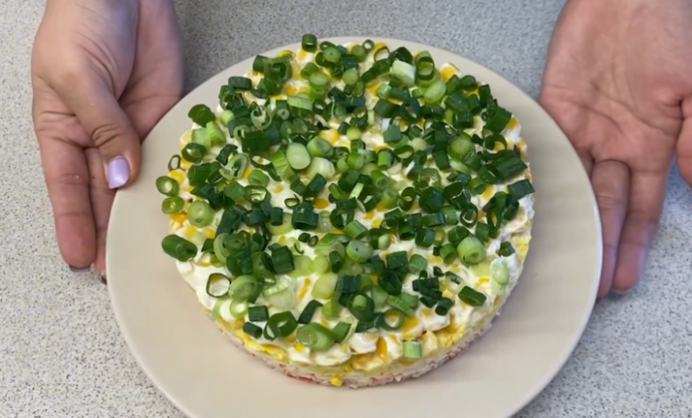 Этот нежный слоёный салат — настоящий король любого праздничного стола. Он не только эффектно смотрится в разрезе, но и невероятно вкусный. Сочные крабовые палочки, сливочная текстура сырка, яйца и сладкая кукуруза создают идеальное сочетание. Готовится этот салат очень быстро, из простых ингредиентов, а результат всегда вызывает восторг у гостей. Попробуйте приготовить и убедитесь сами!