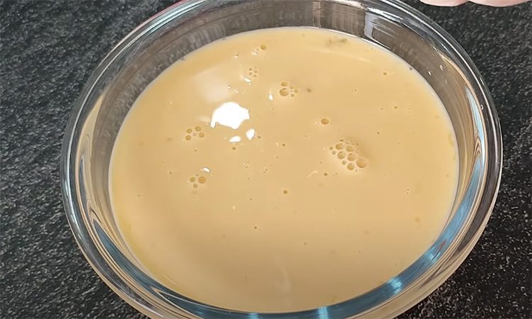 3. Перелейте омлетную смесь в жаропрочную миску. Если есть сомнения в герметичности кастрюли, лучше выбрать миску с широкой плоской поверхностью — омлет поднимется ровнее.